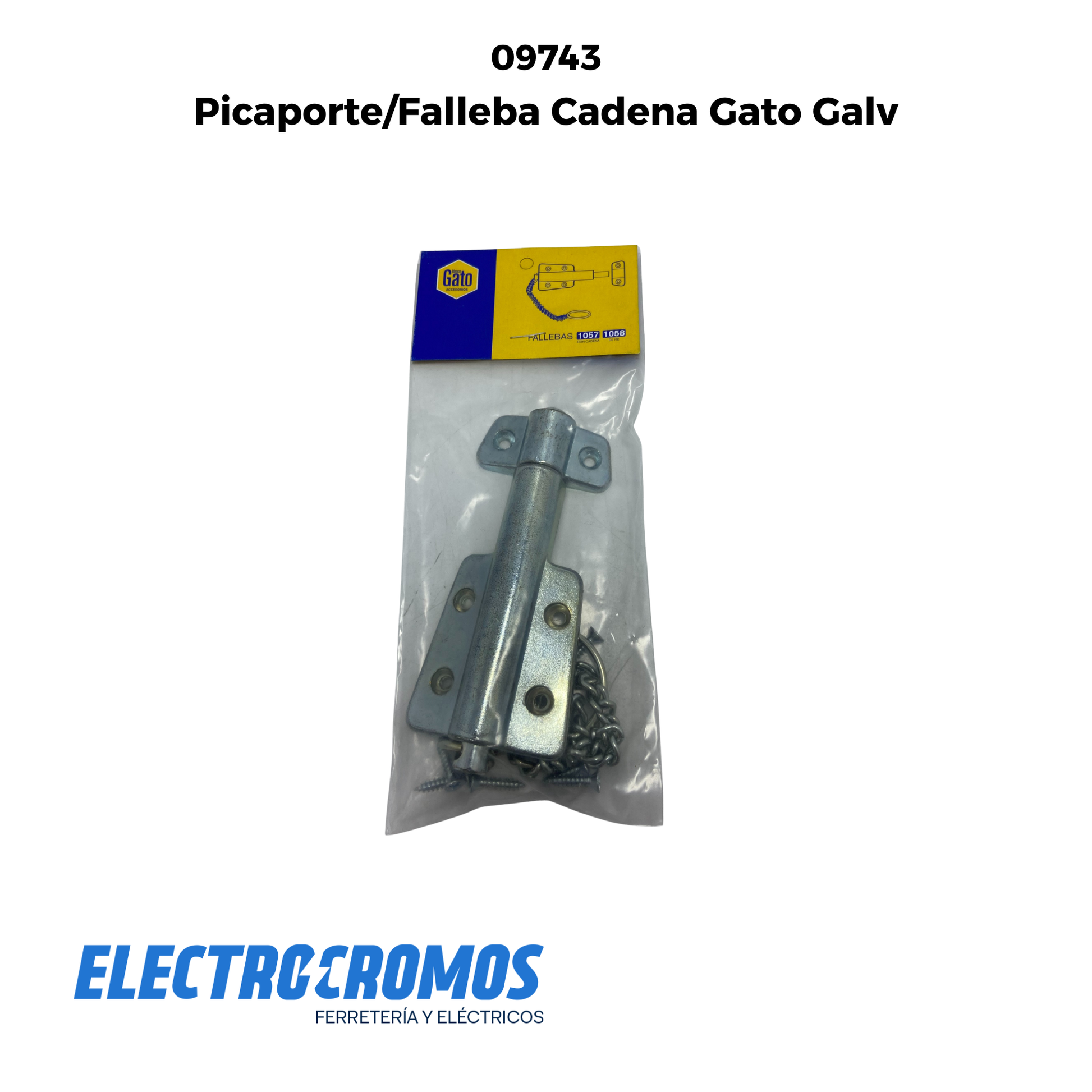 Picaporte de cadena tipo gato galvanizado, ideal para asegurar puertas y ventanas con máxima resistencia.