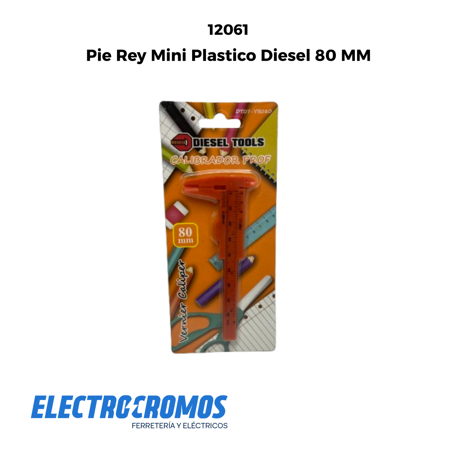 Pie de rey mini de plástico Diesel con capacidad de medición de hasta 80 mm. Herramienta compacta y práctica ideal para trabajos de precisión en espacios reducidos.